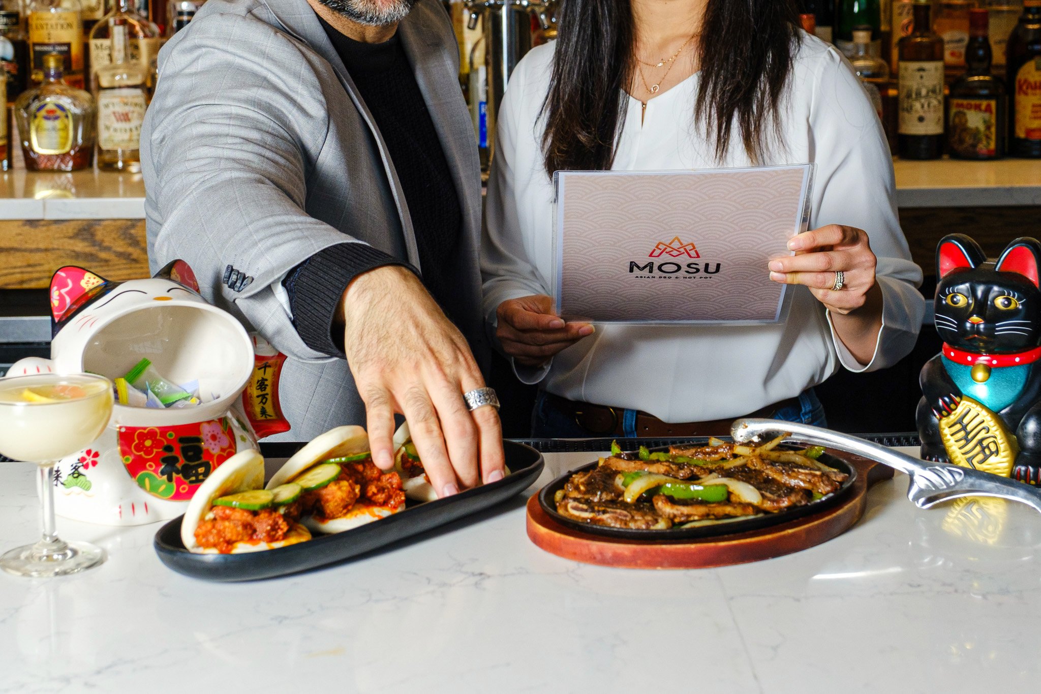 Your restaurant offers three distinct experiences, so when people make reservations they need to choose Chinese hot pot, Asian bbq, or the Asian street food menu available for seats at the bar. For people who haven’t been, how do you describe the MOSU experience?