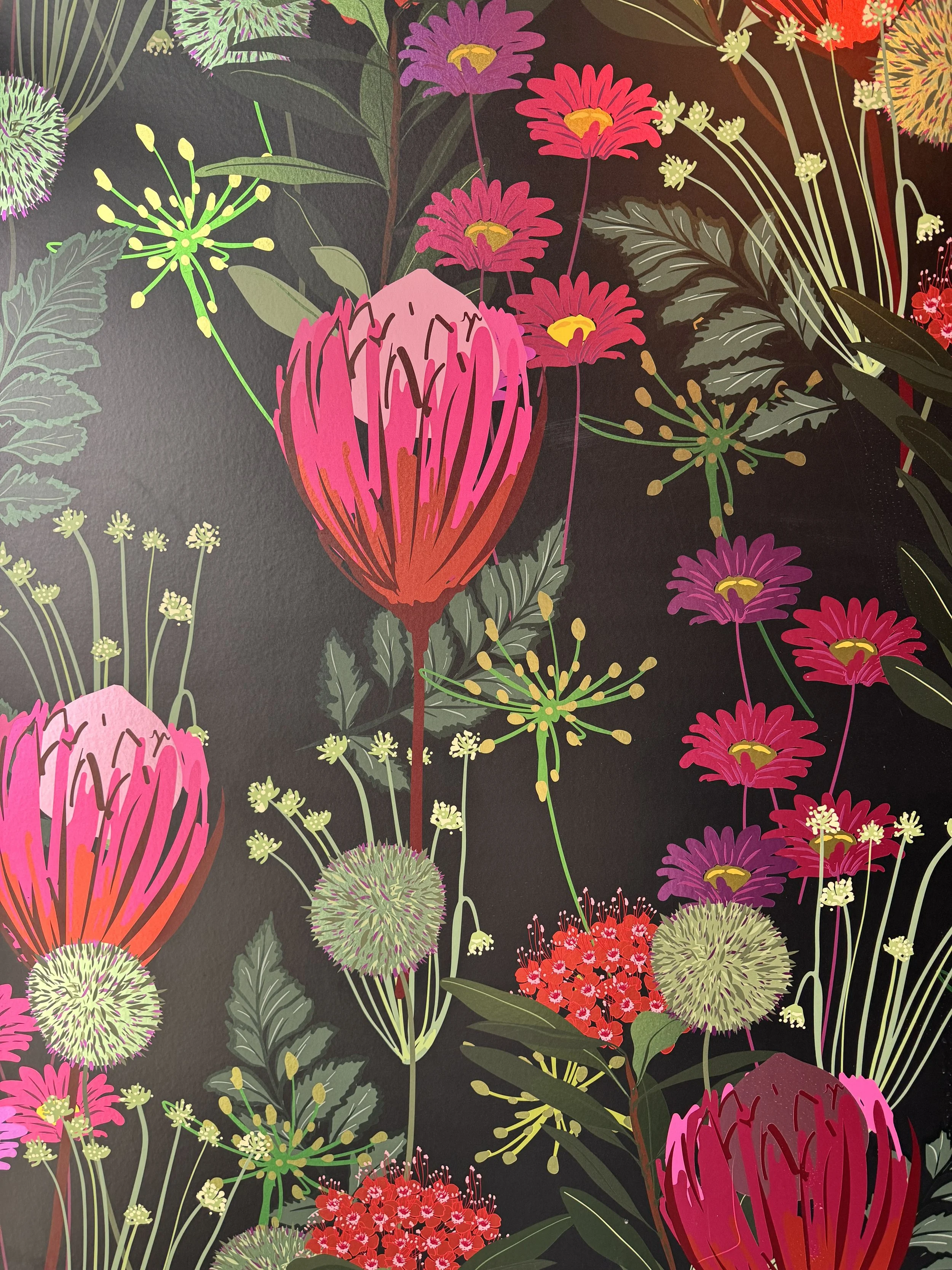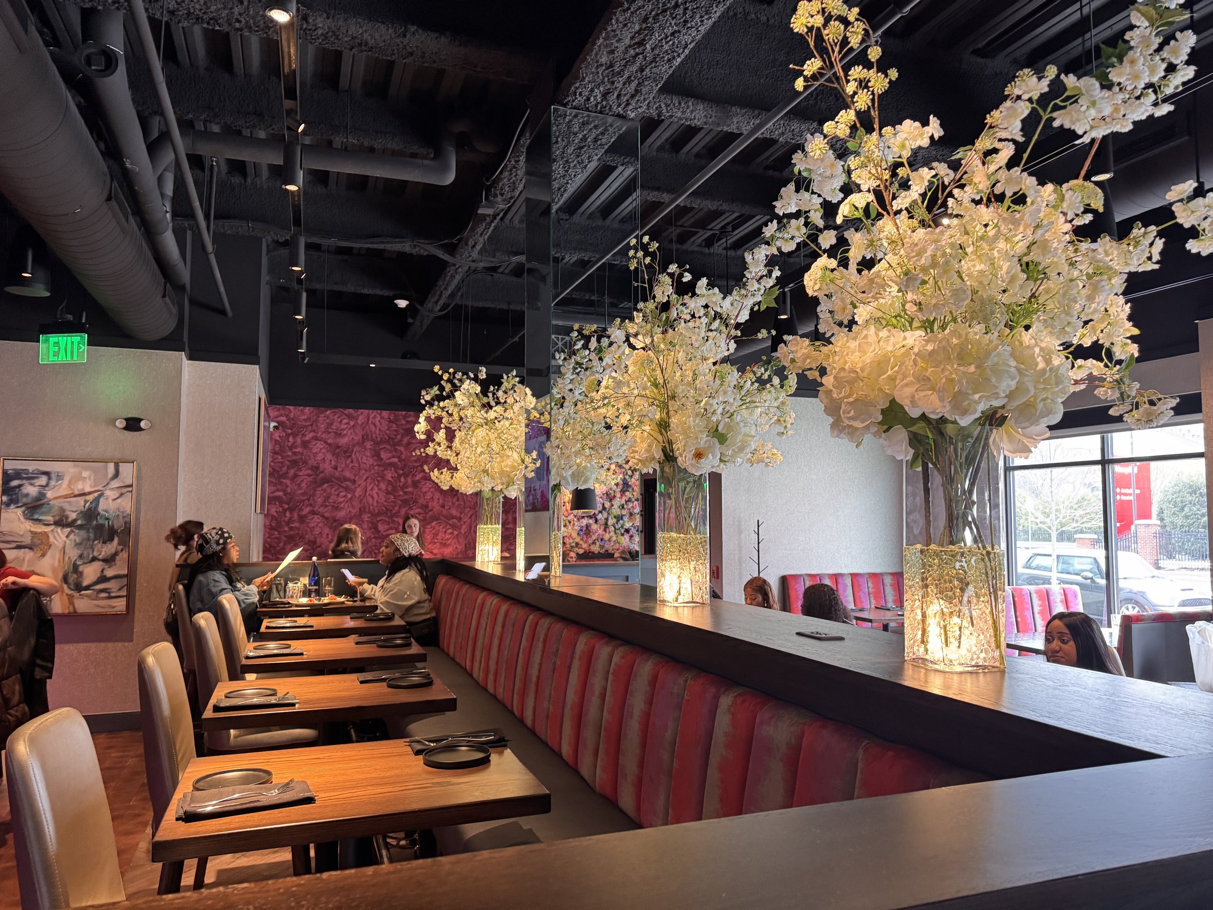 Vibe/Style: Lush, feminine, and unapologetically maximalist. Floral walls cascade from floor to ceiling, and the private events room takes it further — blooms overhead in every direction. Boutique hotel meets garden party, with an energy that's warm rather than precious.