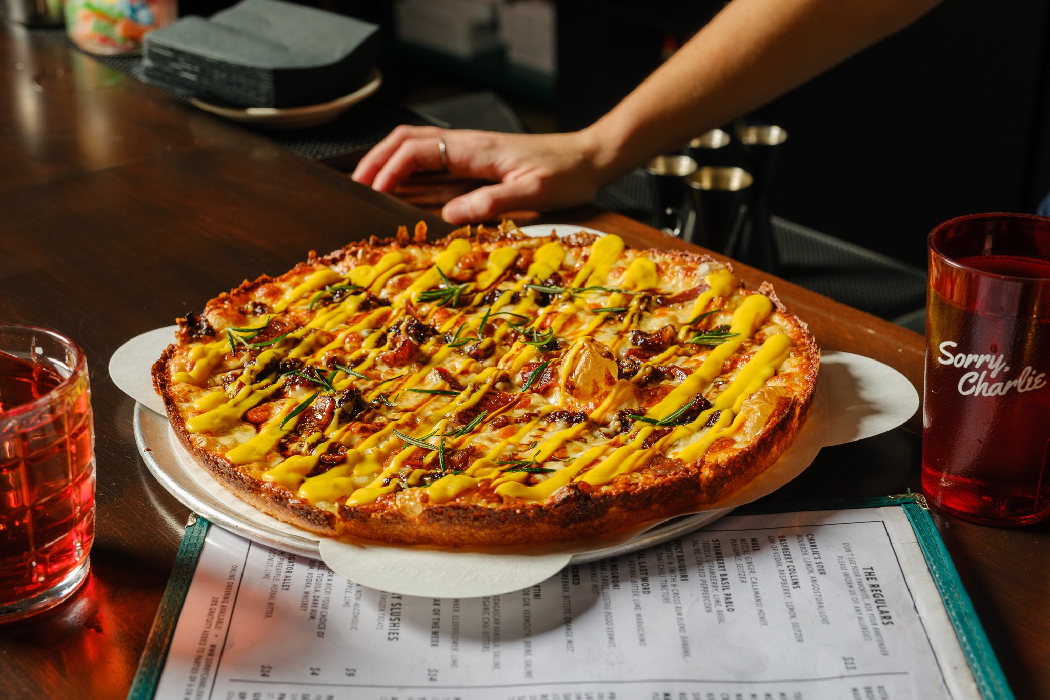 The Half Full Hospitality ownership at Sorry Charlie is a combo of the owners at Detroit-style pizzeria, Hudson & Packard, in Poughkeepsie and the cocktail bar, Goodnight Kenny next door. You’ve worked at Sorry Charlie since it opened in 2024. How did you first meet the team and what was the customer reaction to the Sorry Charlie pan pies?