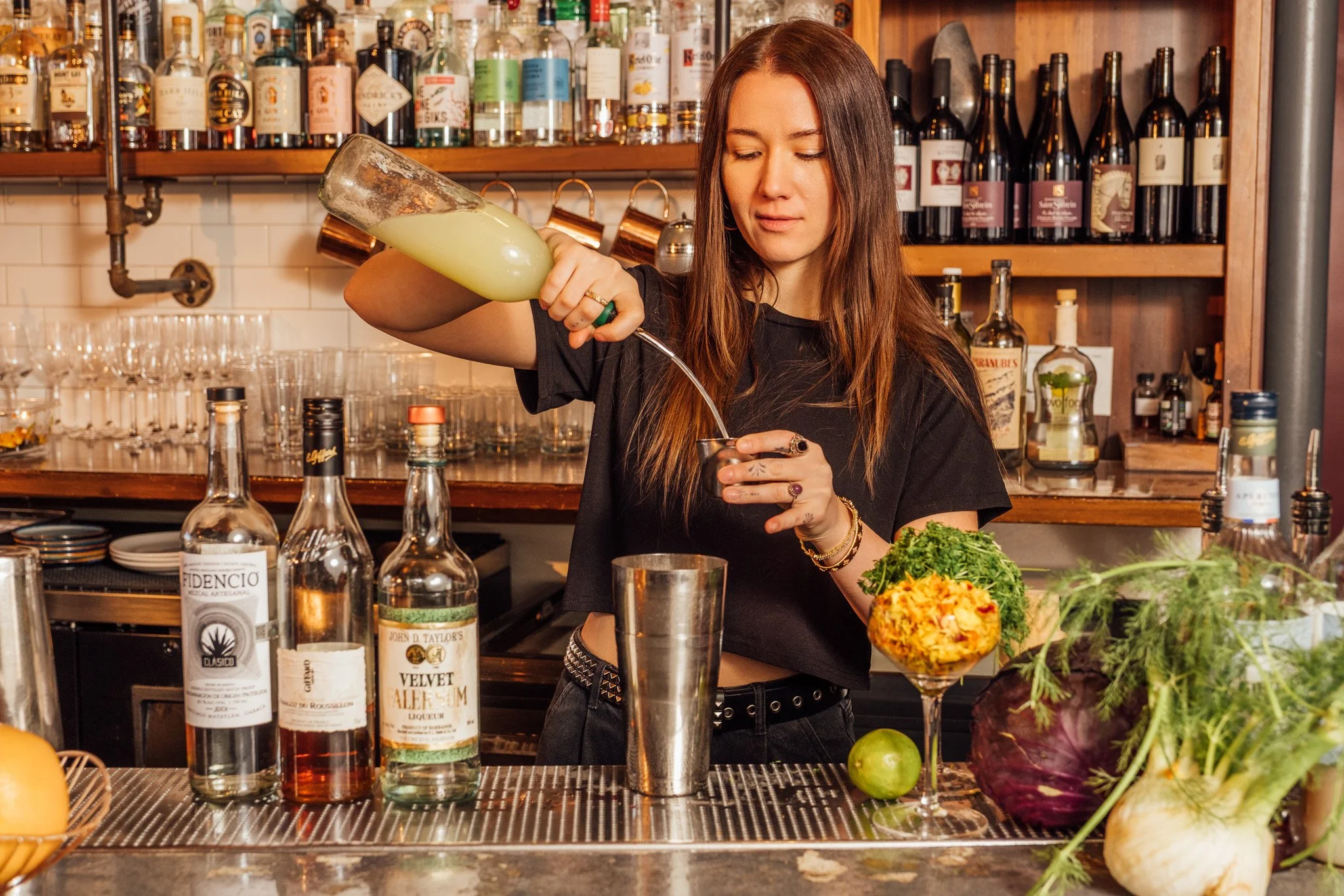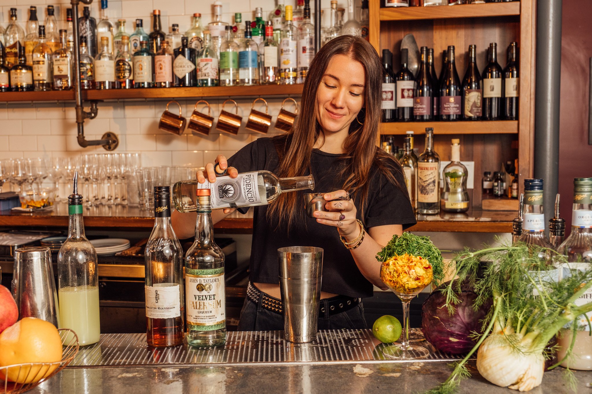 The relationship between the bar and the kitchen is really important. There’s definitely an underlying culinary theme in a lot of our cocktails. Some of the strongest bartenders I’ve worked with have been chefs first and really understand technique, multitasking, and flavor. In terms of the menu, we often see what the kitchen brings in and sometimes we will use the same shrub, sauce or even a pickled Ingredient in our cocktail menu. I love being aligned with the kitchen in that aspect, and in turn it translates to a cohesive experience for the guests.