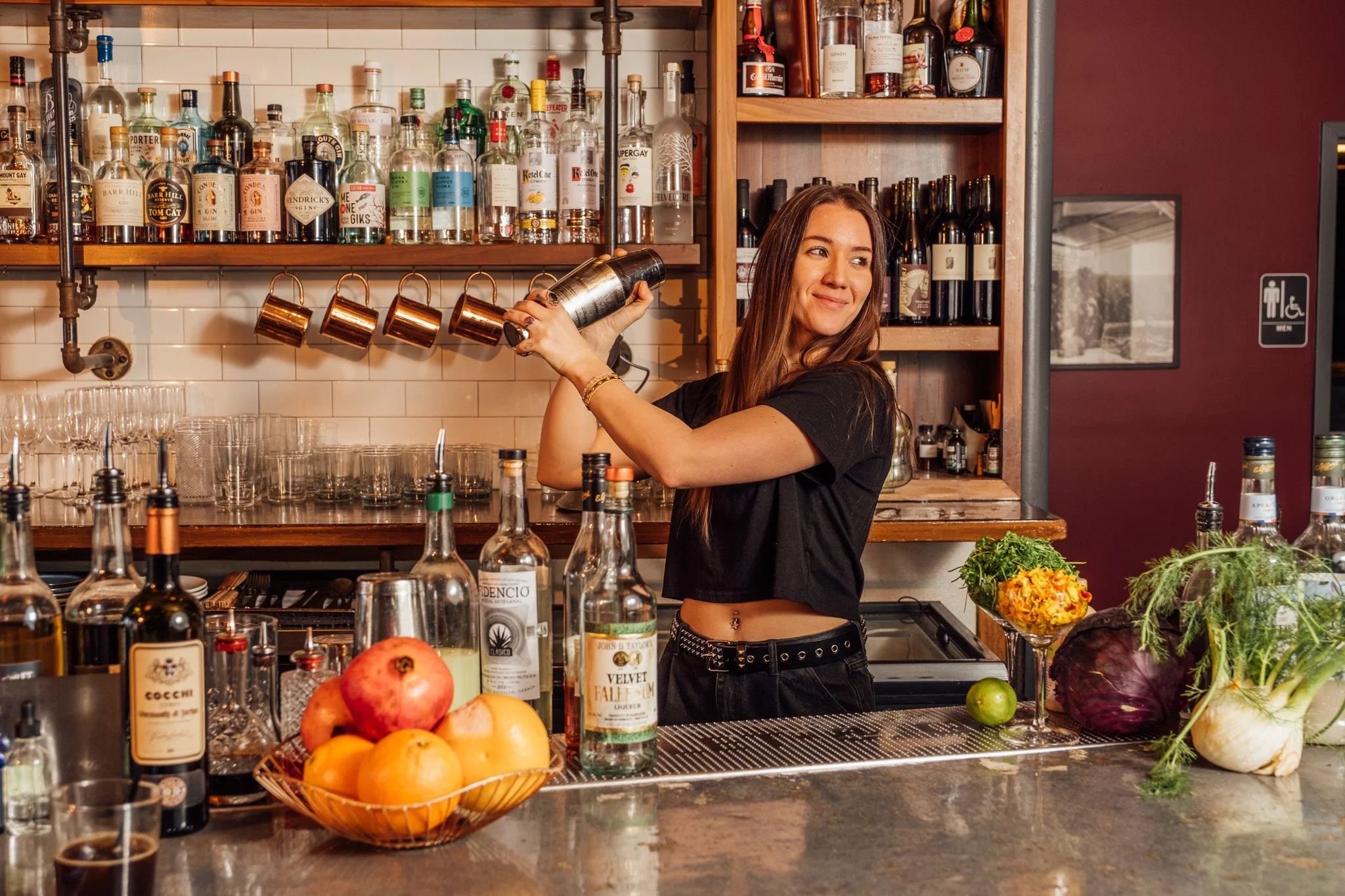 When I turned 18, I told management I wanted to barback. That summer I went to France, and when I came back I went right into training. We had some turnover that fall, which pushed me into bartending pretty quickly. The first couple of months were a challenge. I was discouraged more than once. Early on a bartender in town told me to give it six months and that eventually it would feel like second nature. He was right and everything flowed after that.