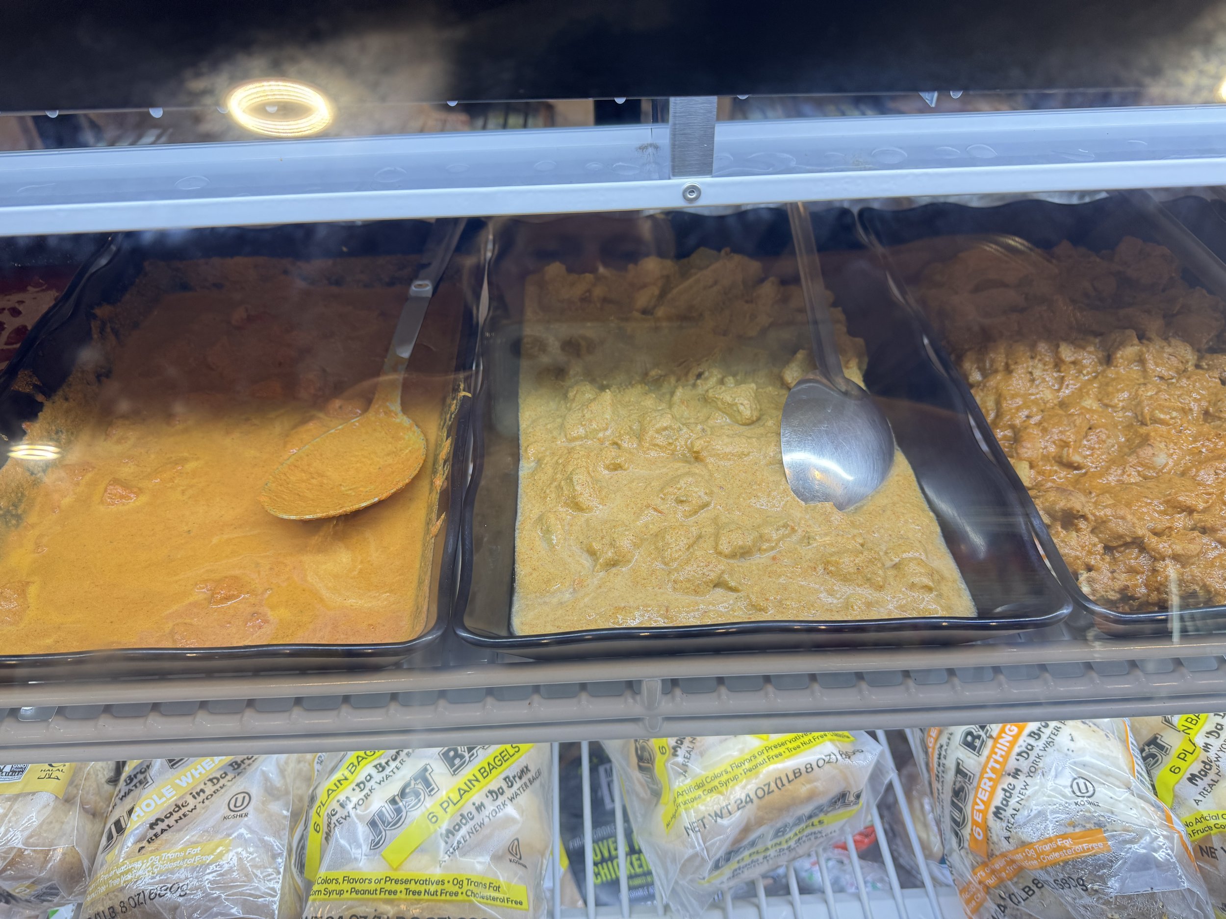 To order in advance, there’s an app called Qwikserve. Otherwise, walk in and place your order on a touchscreen. You can (of course) get a standard egg-and-cheese breakfast sandwich or deli meat sandwiches, but click the button for Indian Cuisine and choose among palek paneer, korma or chicken tikka masala with basmati rice in small (28-oz) or large (38-oz) portions, or order desi sandwiches like a chicken tikka masala sandwich, panini, quesadilla, wrap or… yes… pizza. There are crisp samosas too. Place your order and head to the One Dream Cheese Melt Deli counter in the back of the store where your sandwich or pizza is made fresh to order. Pick up some OJ or a tub of Bart’s Mass Mocha ice cream while you wait.